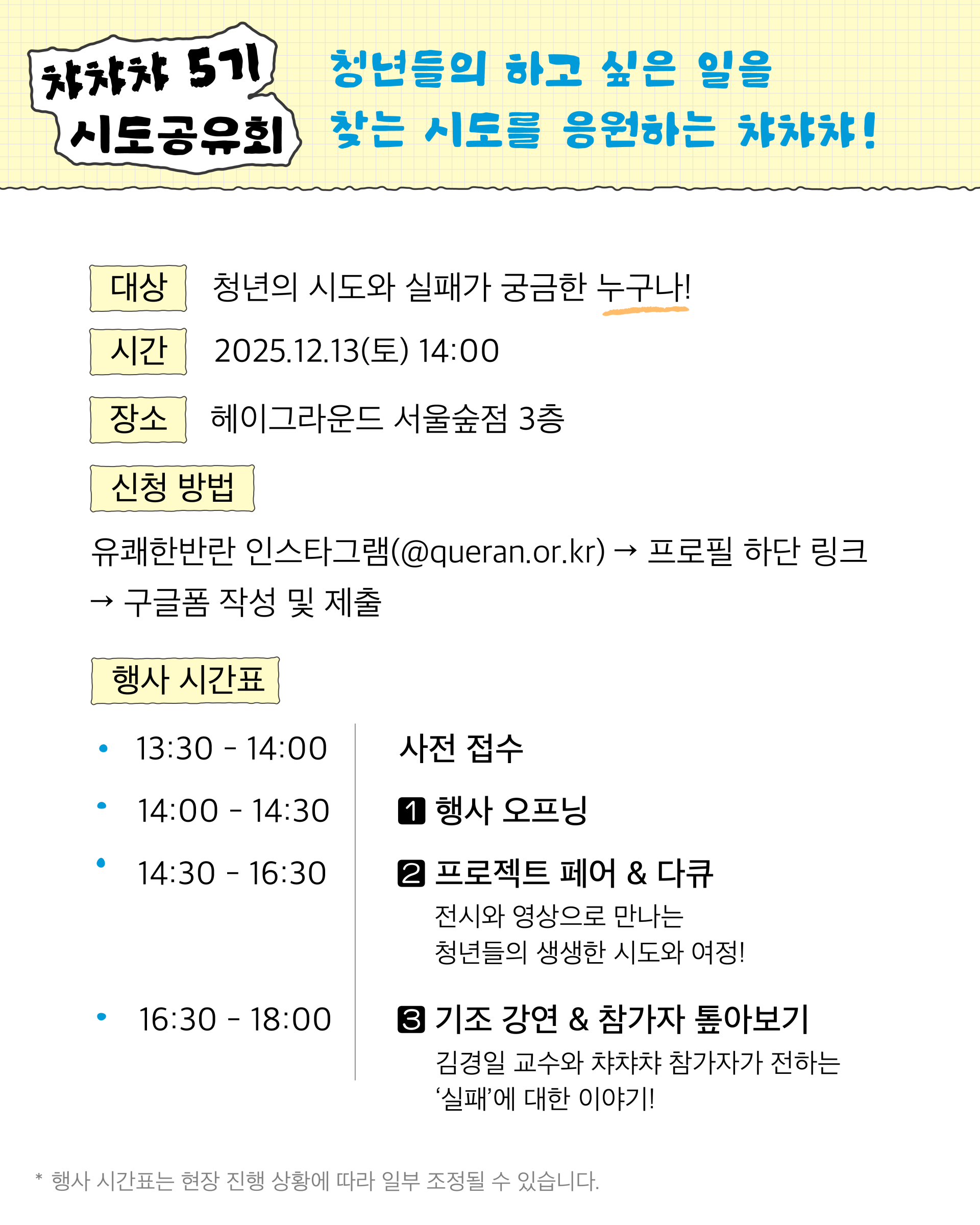 올해 챠챠챠 5기의 여정이 어떤 ‘조각’으로 완성되었는지, 12월 13일 현장에서 직접 보고 듣고 느껴보세요!