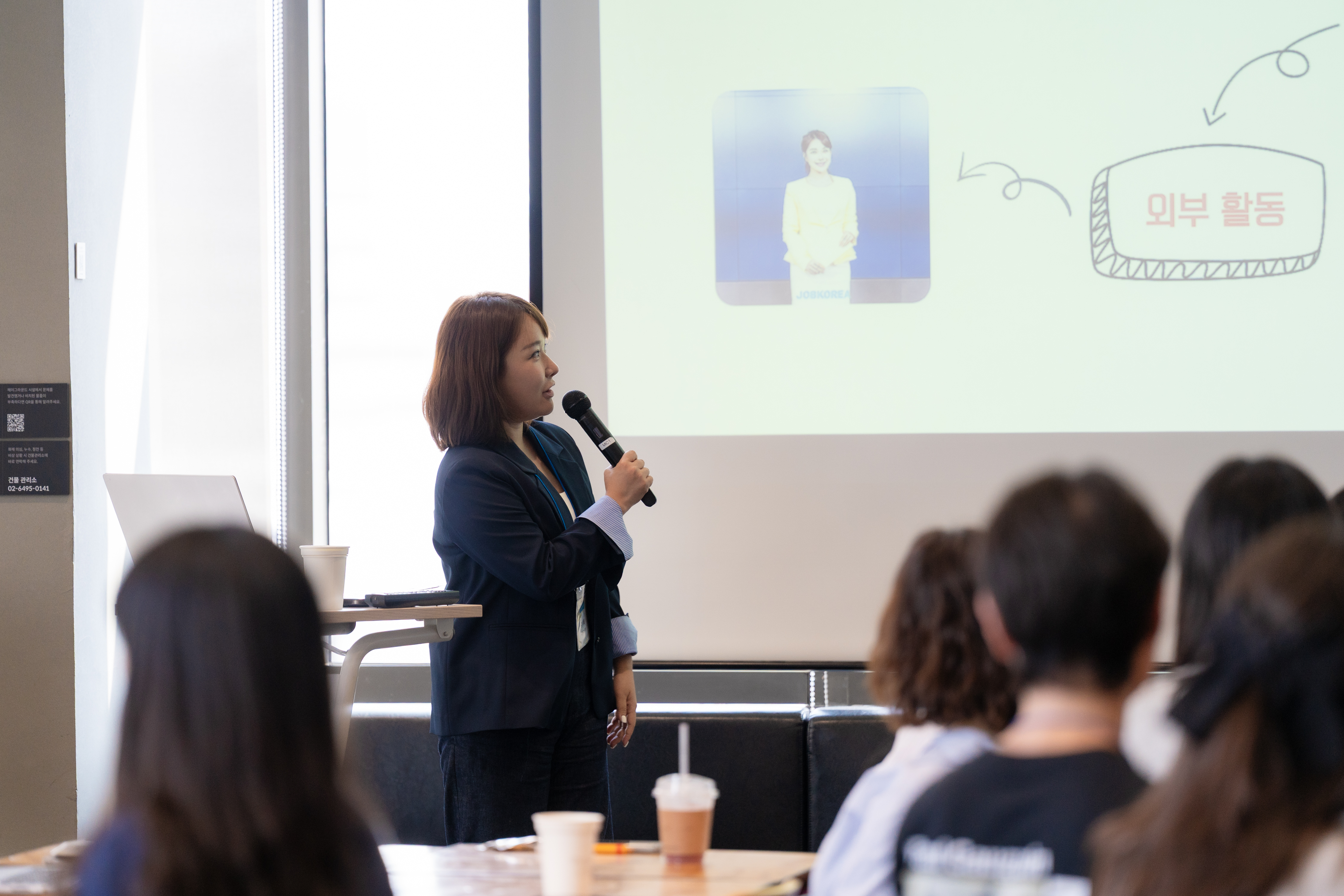 행사의 시작은 김서혜 강사의 ‘프로젝트를 설득력 있게 전하는 스피치’ 강의였습니다. 메시지를 효과적으로 전달하는 스토리 구성법과 원하는 반응을 이끌어 내는 스피치 방법을 배웠어요. 각자의 프로젝트를 소개하는 메시지를 정리해 직접 발표하는 실습까지 진행했는데요. 한 명 한 명에 대해 강사님이 세세하게 피드백도 해주셨어요. 한 참가자는 “이야기가 길다고 메시지가 다 전달되는 것은 아니라는 것을 알게 되었다.”며 “사람들에게 어떻게 해야 프로젝트를 더 명료하고 효과적으로 설명할 수 있을지 고민할 수 있었다.”라고 소감을 전했어요.